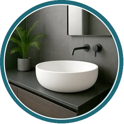 In vacuum membrane pressing, materials like thermoplastics, Solid surface or acrylics are heated until flexible, then formed over a mold using vacuum pressure and a flexible membrane. The result is a perfectly shaped, seamless surface with consistent quality.
